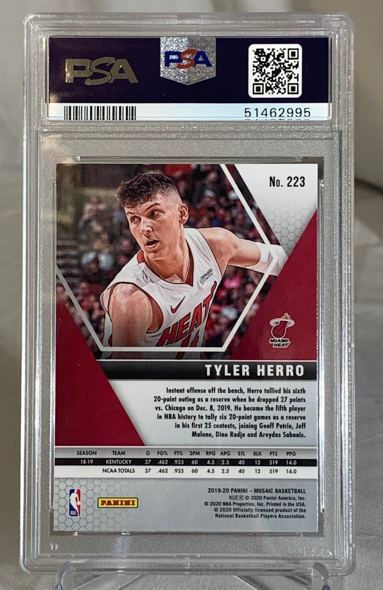 2019-20 Tyler Herro Rookie Card Panini Mosaic #223 Miami Heat PSA 9 #51462995